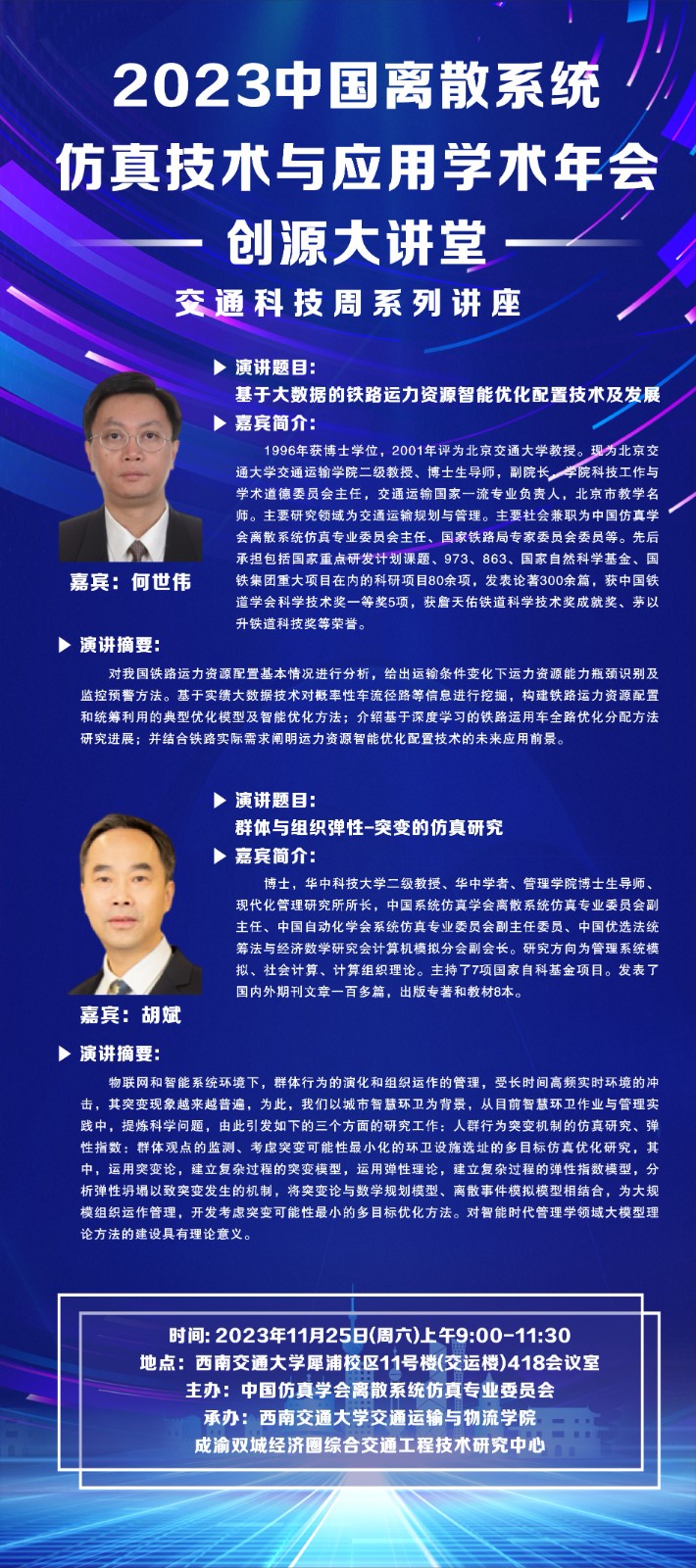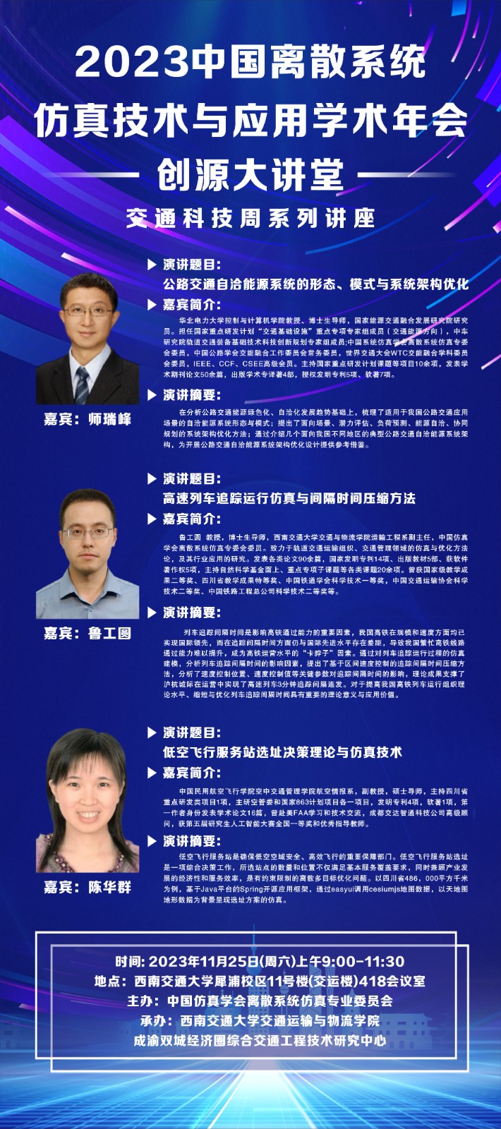主题:随着物联网、智联网、人工智能和大数据等新兴赋能技术的发展,离散系统仿真理论与方法体系也处在重大变革的时期,这对各类学科与离散系统仿真理论技术的交叉研究和应用,提出了新的要求和新的机遇,为此,举办此此场会议共同商讨我们在本领域的合作与发展大计。