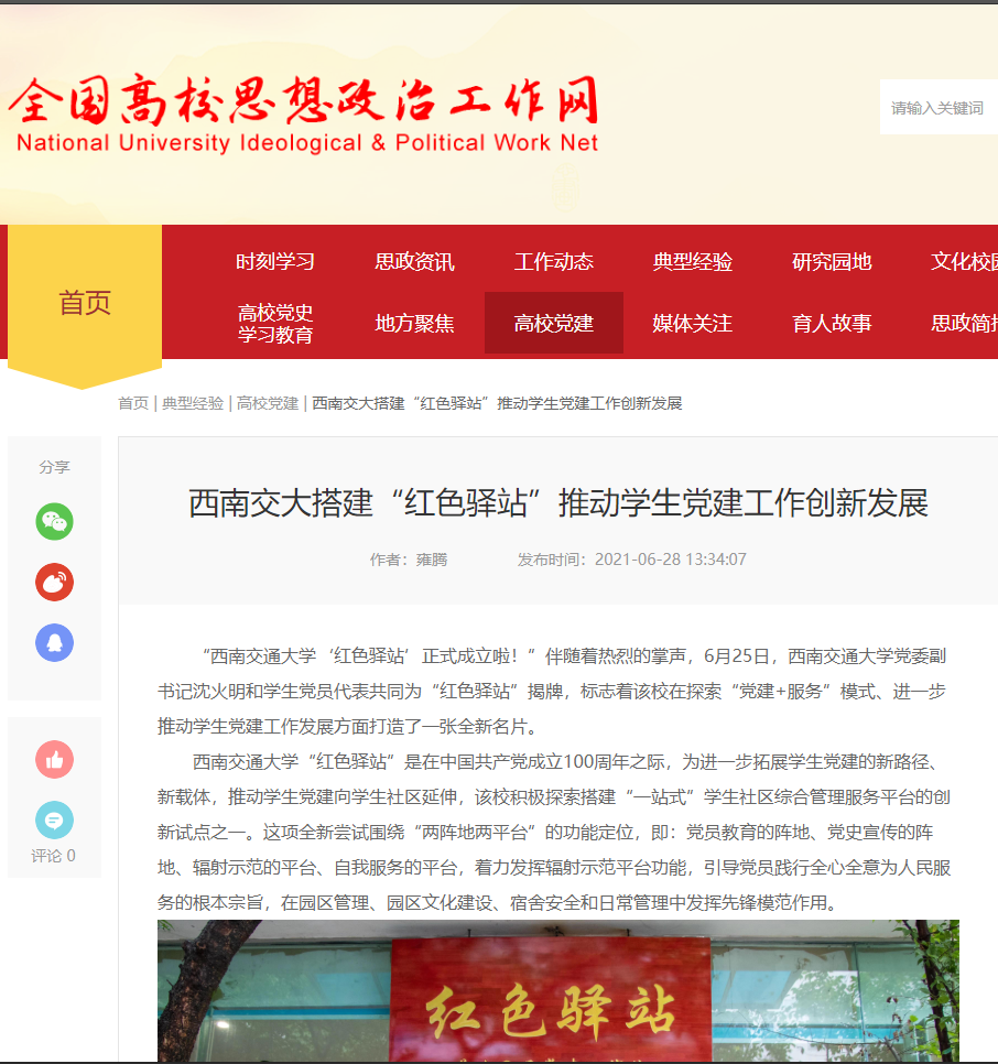 6月29日,由Bevictor伟德员工工作部主办,伟德体育承办的“红色驿站”暨“学党史 守初心 担使命”员工党支部书记论坛在犀浦校区正式揭牌。此次活动受到社会各界的广泛关注,光明日报、高校思政网、中青在线、中国新闻网等多家媒体先后报道此次活动。