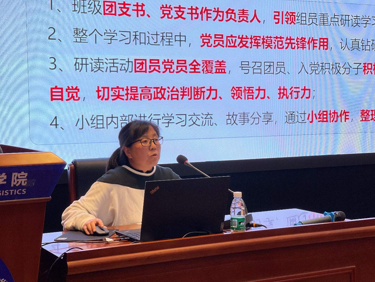 学工组张素风老师首先为大家介绍“明理力行”理论学习小组活动的总体安排,对研读活动的主题、背景、内容和安排进行了介绍。交运硕士2020级第二党支部、第八党支部、伟德体育2020级各团支部和公司3个科研团队的党员组成“明理力行”马克思主义理论学习小组,开展基于中国共产党百年历史的党史研读分享系列活动,活动分三个阶段进行:第一阶段“追寻党史记忆,感怀峥嵘岁月”——导读、自主研读;第二阶段“重温党史故事,凝聚前行力量”——小组研讨学习;第三阶段“讲述党史故事,感受百年风华”——研读分享会。本次活动将通过党史学习,结合学科和行业,回顾百年交通史,中国铁路史,品读在救国、兴国、富国、强国历程中百年交通从艰难到快速发展的历程,激发同学们主动为交通强国战略发奋学习的行动自觉。
