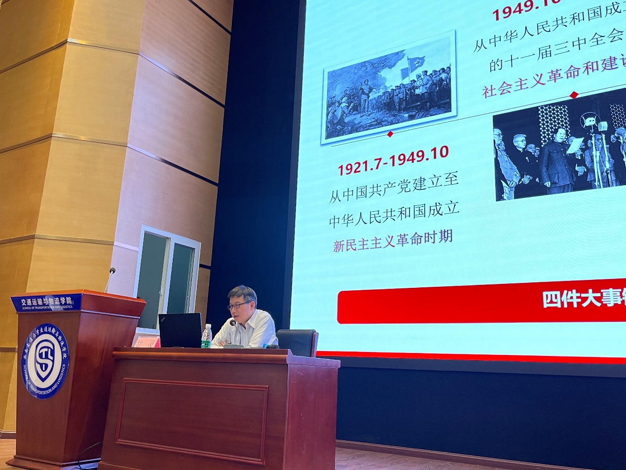 开班仪式上,甘灵书记作了中国共产党百年辉煌的读书班导读,以四个阶段、四个“大业”为关键词解读中国共产党百年辉煌。与同学们一起回顾中国共产党在新民主主义革命时期完成救国大业,在社会主义革命和建设时期完成兴国大业,在改革开放和社会主义现代化建设新时期推进富国大业,在中国特色社会主义新时代推进并将在本世纪中叶实现强国大业的辉煌历程。从1840年鸦片战争中国人民经历的风雨沧桑,中共一大召开,长征中“半条被子”军民鱼水情,一位军需处长的境界,小车推出的解放战争胜利,抗击新冠疫情中的中国之治与西方之乱的鲜明对比,全面打赢脱贫攻坚战等讲述,生动诠释中国共产党带领中国人民从苦难到辉煌的艰辛历程。在导读中,甘书记向同学们还讲述从中国人自主修建的第一条铁路京张铁路,到成渝、宝成铁路和京沪高铁的铁路发展的历程。导读最后甘书记以习近平总书记考察清华大学的寄语青年,广大青年要爱国爱民,从党史学习中激发信仰、获得启发、汲取力量,不断坚定“四个自信”,不断增强做中国人的志气、骨气、底气,树立为祖国为人民永久奋斗、赤诚奉献的坚定理想。甘灵书记为师生上了一堂生动的党史导读课,激励师生要锤炼品德,要实学实干,肩负重任,奋勇前进。