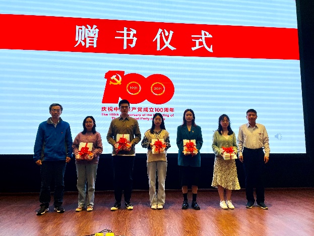 仪式上,甘灵书记和王正彬副书记为员工党员代表发放了党史学习书籍。