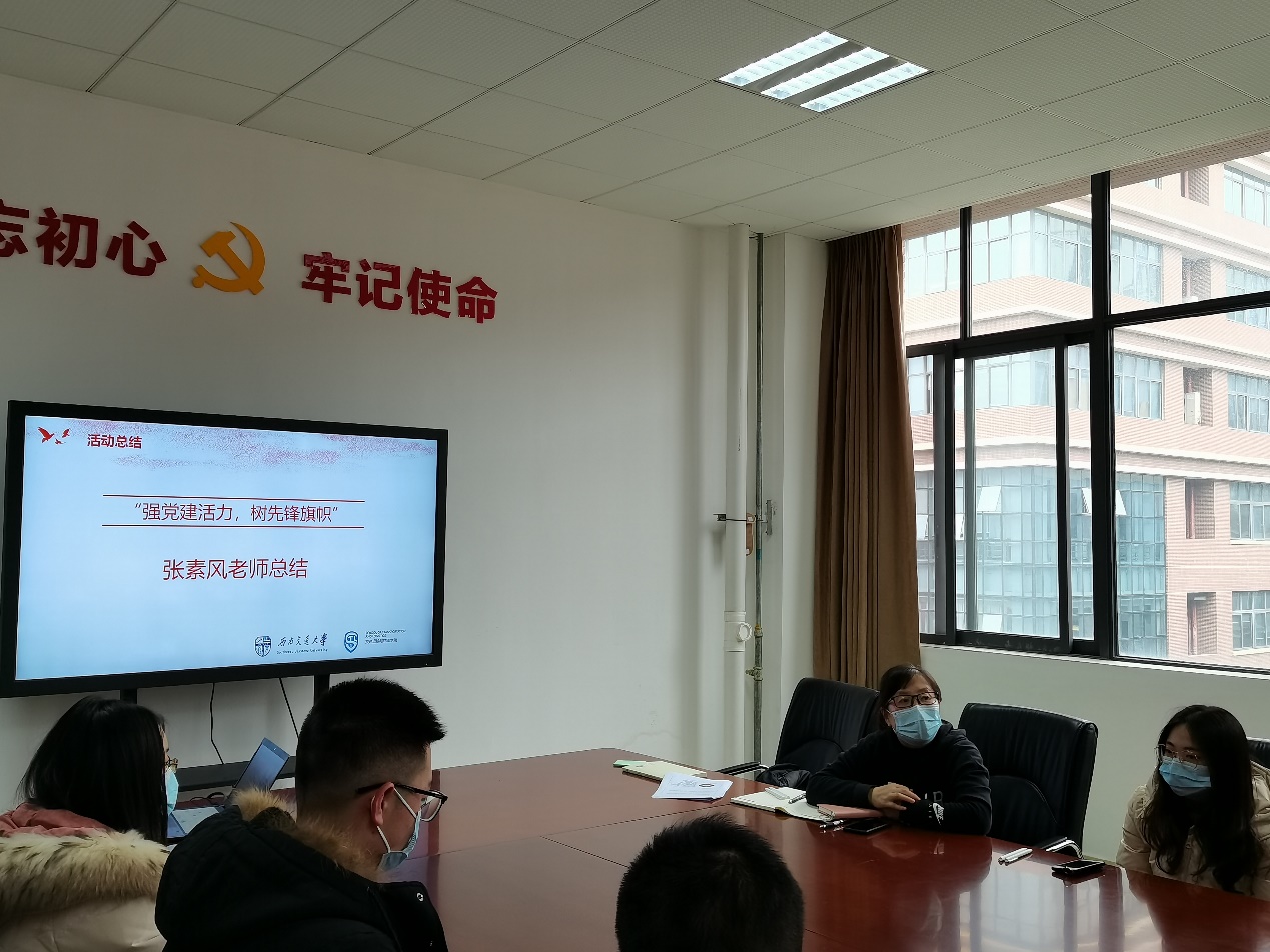 最后,张素风老师作活动总结。她讲到通过本次沙龙活动,相信各支部对于开展支部中的难点和困惑都有了初步解决方案。研究生党支部作为党在研究生群体中的重要堡垒,希望各加强研究生党员思想政治引领,筑牢研究生理想信念根基。至此,伟德体育“强党建活力,树先锋旗帜”研究生党支部书记微沙龙活动圆满结束。