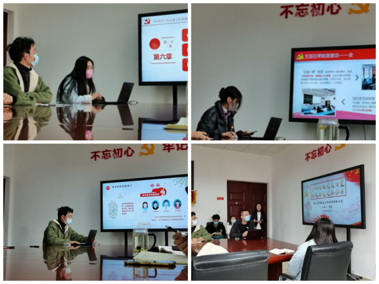 随后,硕士19级第七党支部书记侯雨彤、本科物流第二党支部书记洪诗雨、硕士18级第七党支部书记陈木泉和博士2018级党支部李想同志分别从“党支部委员会建设”、“党员管理教育”、“党支部如何引领班级建设发挥党支部和党员先锋模范作用”和“党支部特色活动举办”分享工作经验。