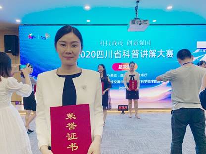 8月20日,由四川省科学技术厅主办的“2020年四川省科普讲解大赛”决赛在四川省人才之家举行。来自全省高等院校、科研院所、医疗机构等相关单位的78个代表队119名选手参加了本次比赛,公司青年教师李力取得大赛二等奖的好成绩。
