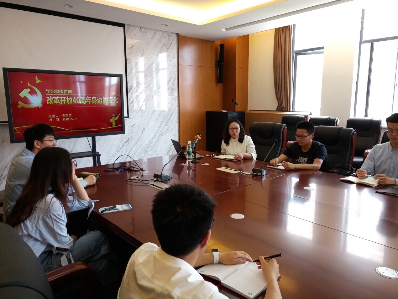 交通运输与物流公司党委严格落实党委委员联系党支部制度,2018年4月20日下午2:00,党委李国芳副书记为所联系的博士2017党支部、硕士2017级第九党支部及本科交运第二党支部三个员工党支部在交运楼417会议室就“改革开放四十周年改变”专题上了一次党课,并且与员工党员就新时代背景下如何做好合格党员的问题进行了座谈交流。会议由公司党委李国芳副书记主持,员工党支部全体党员及部分新发展党员出席本次会议。
