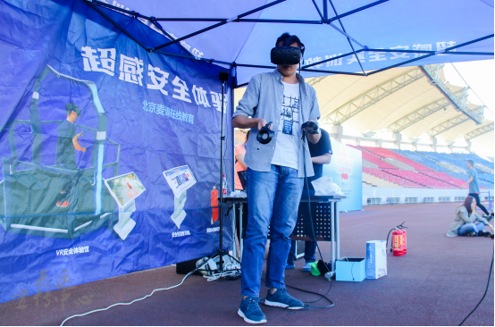 在“心肺复苏”演练中,指导员通过假人来进行实地操作,完整而细致地向同学们展示了如何正确进行心肺复苏的操作,纠正了同学们日常认知中的常识错误。在讲解结束后,许多同学都进行了尝试,指导员则耐心地纠正同学们的动作错误,起到了很好的教育作用。VR虚拟体验有两个项目,一个是虚拟灭火器,一个是地震场景模拟。公司任瀚堃同学在指导员的一步步地指导下,顺利完成了虚拟地震场景中的避难以及逃脱。