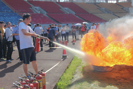 在消防演练的场地,讲解员首先详细讲解了消防器的使用规则和正确的使用方法,确保同学们都能正确地使用并达到成功灭火的效果。公司祝帅同学积极参与此项教学体验,在详细地听完讲解后,祝帅同学成功地扑灭了火盆中的火焰,了解了日常紧急情况处置方法,增加了自己的消防实践能力。