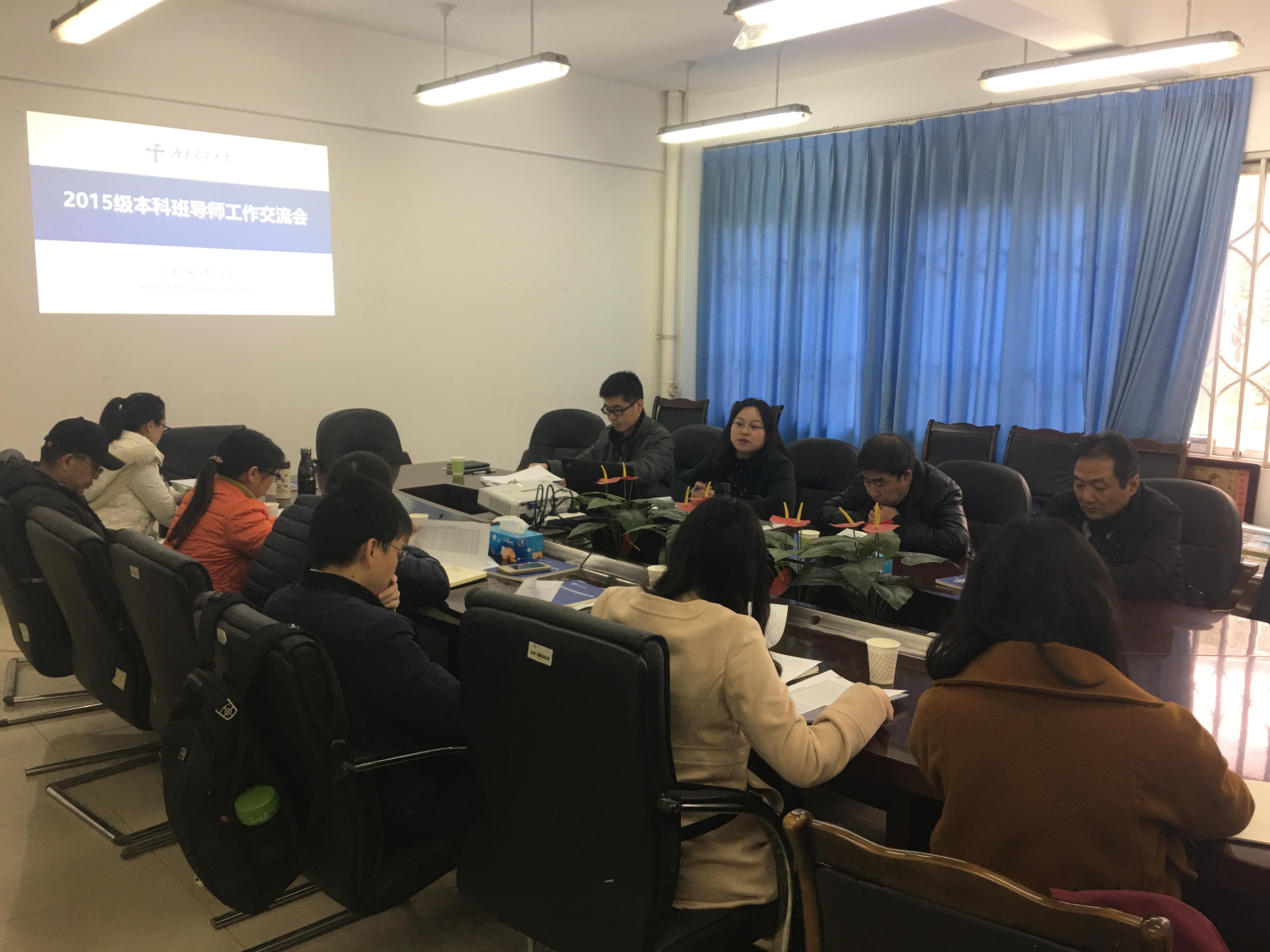 为了贯彻落实全国高校思政会议精神,加强教学、员工管理和班导师间的沟通,构建协同育人机制,促进班导师工作精细化,形成育人合力,提高员工培养质量,公司于11月22日下午14:00在X2104举行了本科2015级班导师工作交流会。公司党委郝建平书记、马驷副经理、李国芳副书记、15级班导师们和辅导员老师参加了本次会议。
