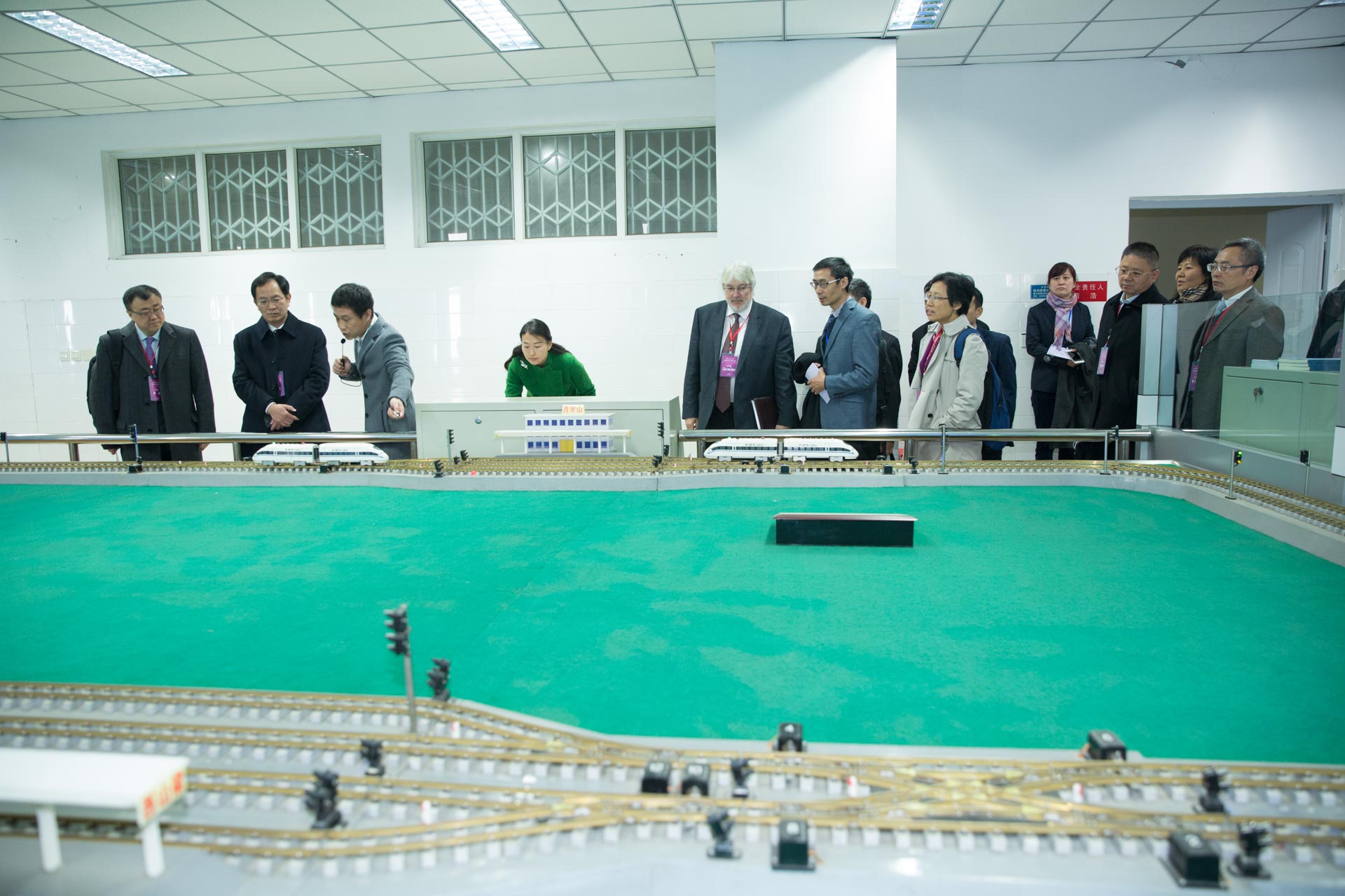 张光远副经理主要针对“高速铁路综合调度指挥仿真实验室”、“编组站作业组织仿真实验室”、“列车运行仿真与信号控制实验室”、“交通行为安全仿真实验室”、“交通运输设备实验室”和“公交调度指挥模拟实验室”在实验教学方面、人才培养方面、提升员工的理论能力和实作能力方面、培养员工的设计和创新能力等方面以及实验室开设的个性化实验等方面为各位专家进行了汇报。
