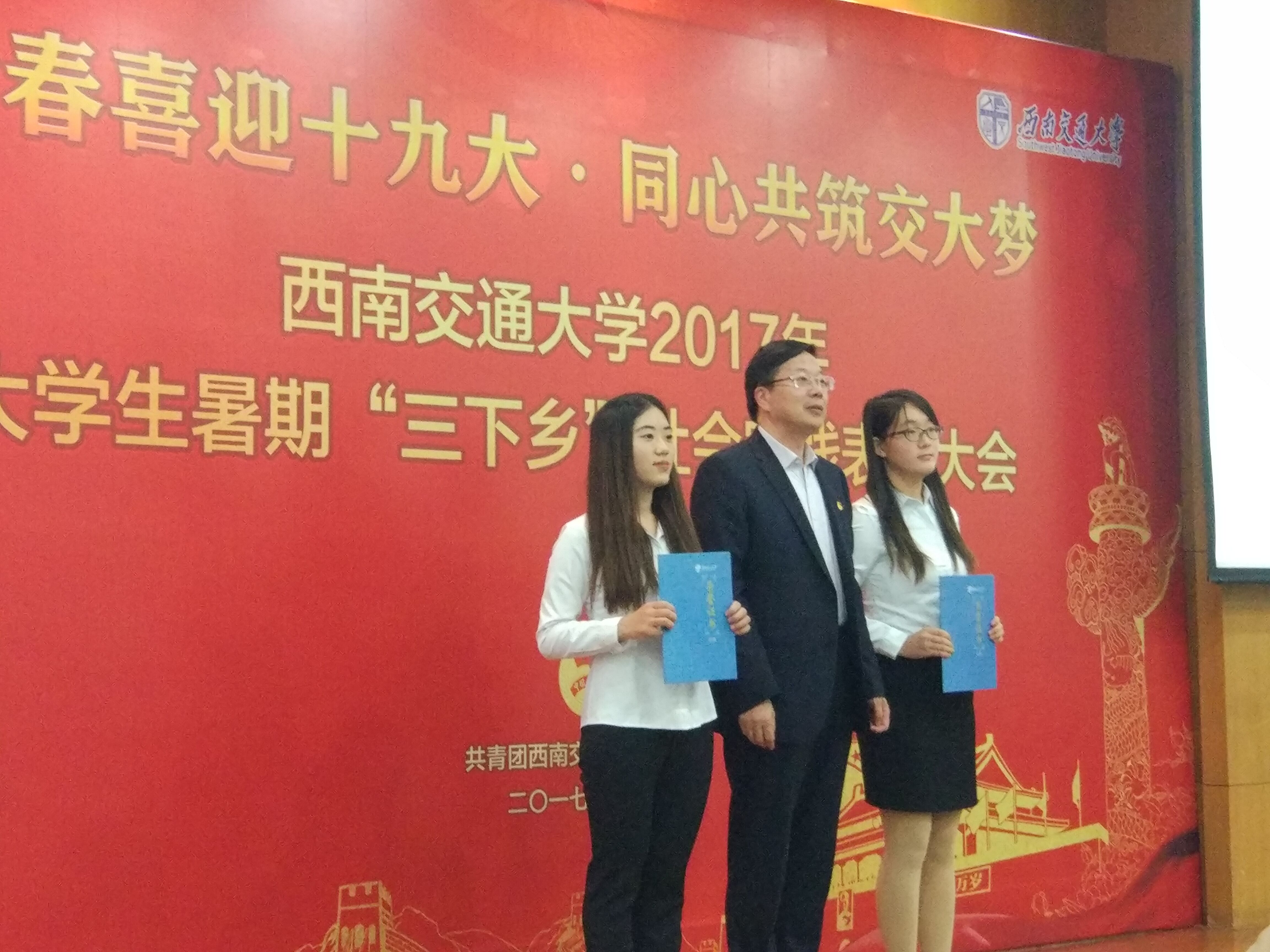 公司开展的暑期“三下乡”社会实践活动形式多样、富有创新,取得了丰硕的成果,全校共196支队伍仅22支队伍获评校级优秀实践队。公司云运宣传中心员工干部组成的“云情运卿” 三下乡社会实践队获评“2017年全国大中专员工志愿者暑期‘三下乡’社会实践活动优秀实践团队”,得到团中央表彰,是今年全校唯一一支受到团中央表彰的实践队,同时“云情运卿”实践队还获得第九届全国老员工社会实践奖;交运类国防生党支部与青协员工干部组成的“关爱革命伤残军人·弘扬爱国拥军传统”实践队、青协员工干部组成的“春风入乡·雨润南溪”实践队获得公司优秀实践队伍称号;公司员工工作组王炎冰、李清滢、徐君翔三位老师获评校级优秀指导教师;各项实践活动还得到了社会媒体的关注,人民网、凤凰网、中青网多家媒体宣传报道。此次“三下乡”社会实践活动充分展现了公司组织得力、老师尽心指导、员工踏实肯干的良好风貌。