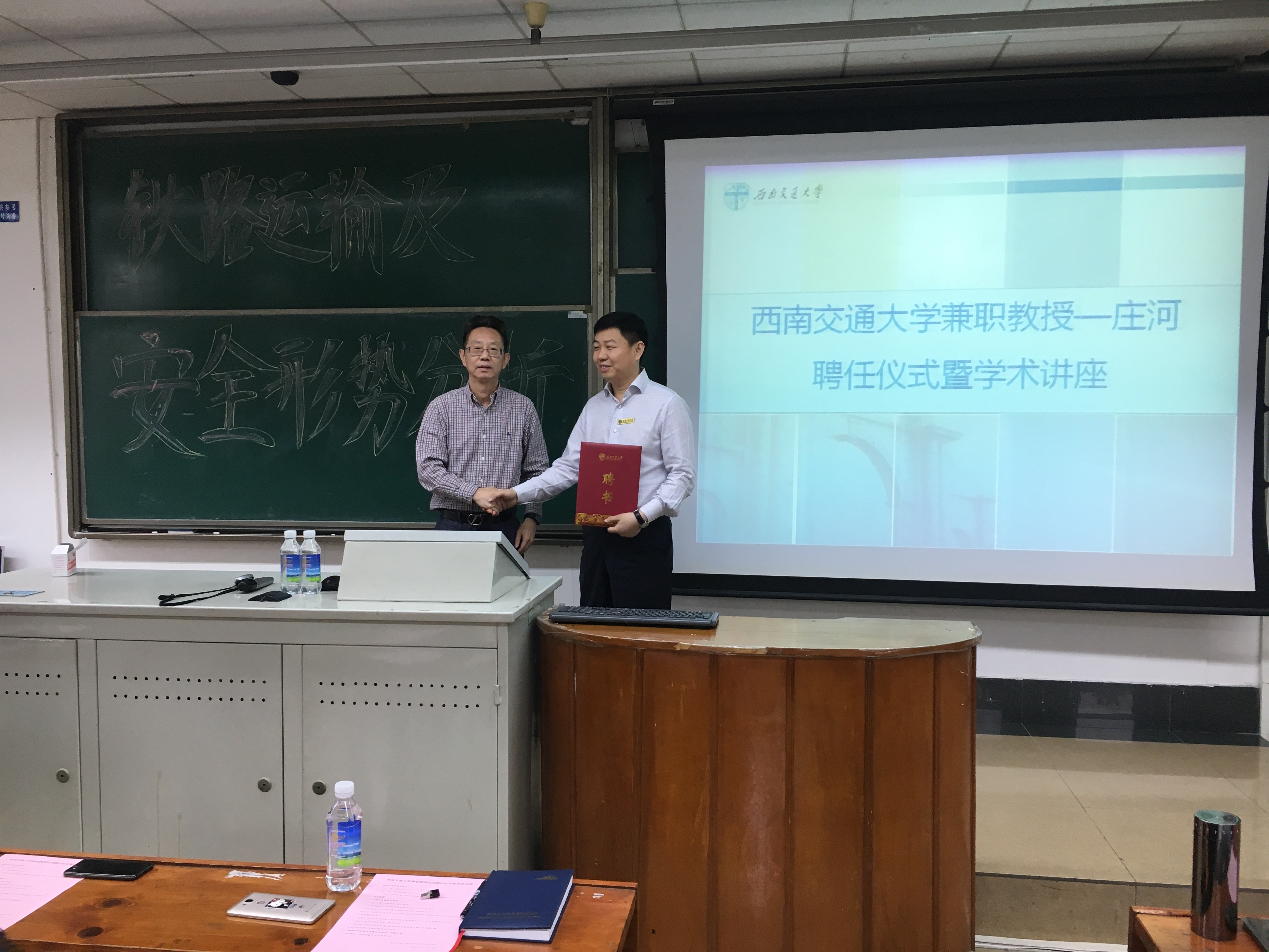 2017年5月9日上午9时,“Bevictor伟德兼职教授庄河聘任仪式暨学术讲座”在九里校区四号教学楼4307室顺利举行。Bevictor伟德副董事长蒲云教授、中国铁路总公司运输局调度部庄河副局长、交通运输与物流公司党委郝建平书记,以及公司部分领导、老师和研究生出席了本次活动。本次活动由郝建平书记主持。