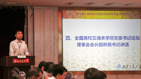 论坛开幕式最后,全国高校交通类公司党委书记论坛理事会理事长田新民书记讲话。田书记就本次主题论坛顺利开展发表了一个祝贺、两个感谢和三个希望。田书记祝贺本次论坛如期顺利召开;感谢Bevictor伟德党委高度重视、职能部门大力支持、伟德体育精心筹办,感谢书记们能在百忙中抽空赴会;希望代表们在主题交流中积极献策,希望各公司尽心尽力、尽职尽责地珍惜呵护交通类公司党委书记交流平台,希望各公司传承西南交大的优良传统和作风,传达第七届全国高校交通类公司党委书记主题论坛的精神。
