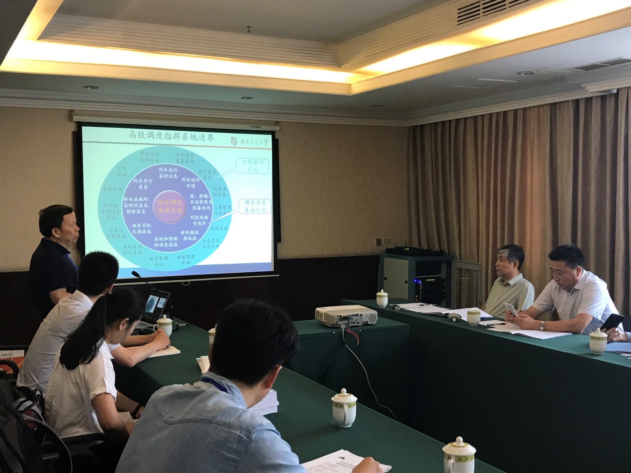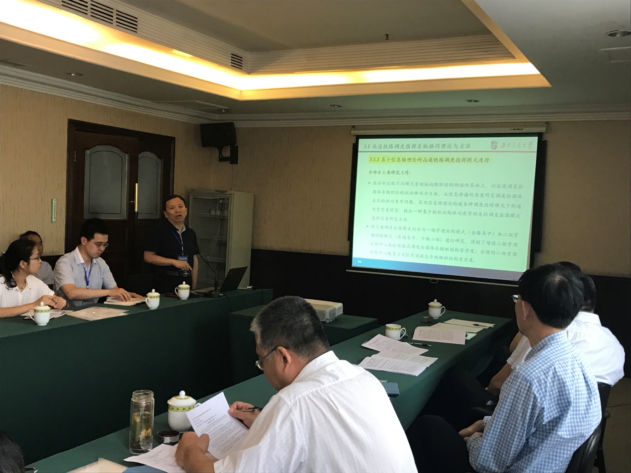 彭其渊教授代表课题组向专家组汇报了课题研究过程、主要研究结论和成果。首先,彭教授就项目的研究背景和研究进程及技术路线进行了大致介绍,接着在研究成果汇报阶段,彭教授犀利的指出了影响高速铁路调度指挥系统调度指挥安全性的关键在于调度人员工作的可靠性,并首次利用大数据技术和建模方法对调度员工作负荷与调度指挥区段的相关关系进行了量化;此外,彭教授还提出了高速铁路调度指挥系统风险预警机理及主动安全控制方法以及高速铁路调度指挥系统风险实时分析与预警系统设计,该项研究不仅为今后我国调度指挥工作提供了辅助决策,缓解了调度员的工作负荷,同时也为我国高速铁路调度智能化奠定了基础。最后,彭教授就项目取得的学术成果以及人才培养情况进行了汇报。依托本课题研究,课题组累计发表学术论文66篇,其中国内外学术期刊论文41篇,其中SCI检索论文9篇、SSCI检索论文1篇,影响因子大于2.5的4篇(包括3篇 Transportation research part B和1篇Transportation research part E),出版专著1部(获“十三五”国家重点出版物出版规划项目资助),授权国家发明专利和软件著作权7项。本项目研究成果丰硕、超额完成计划任务,创新性成果得到了与会专家的一致好评。