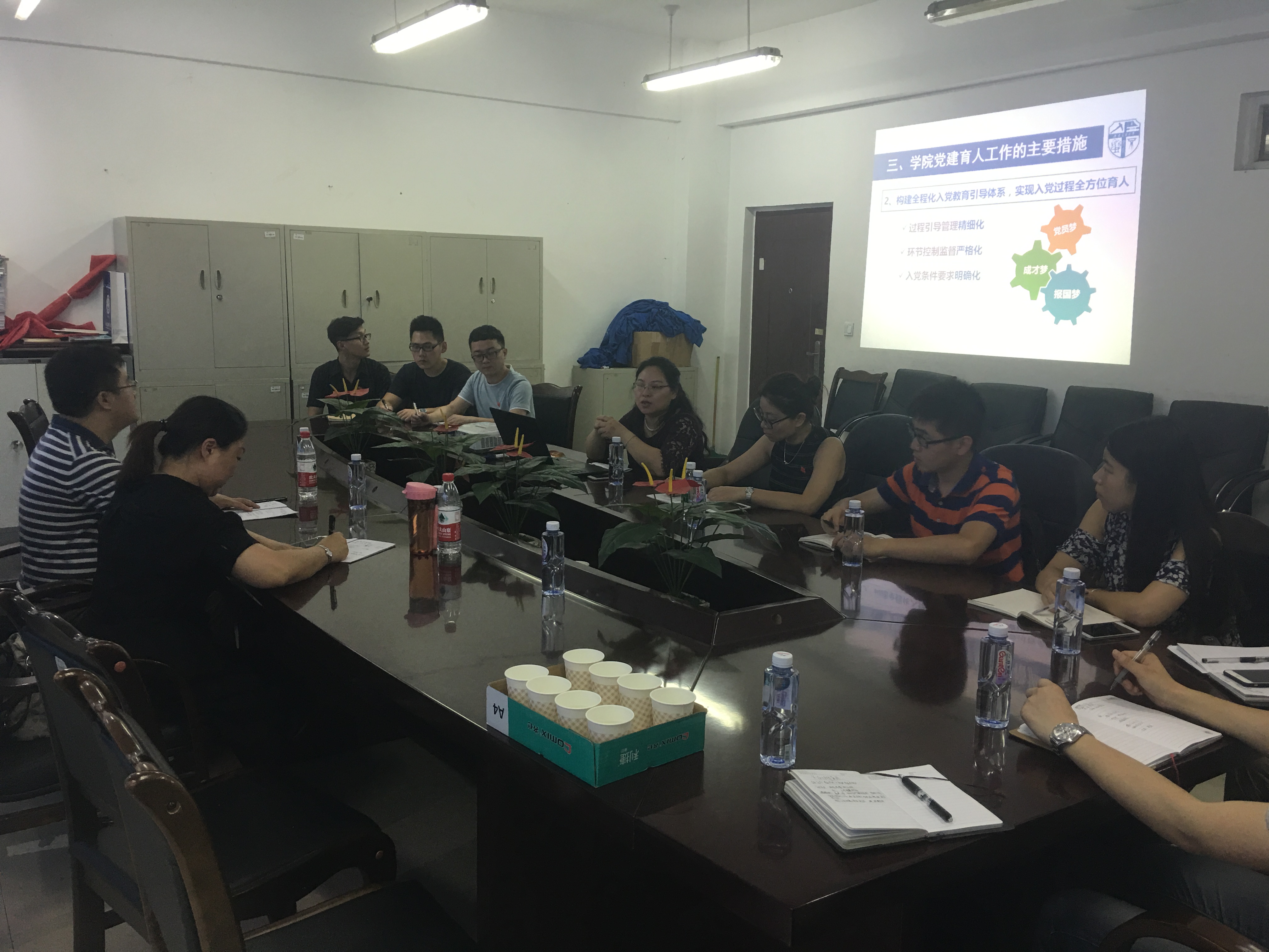首先,李国芳副书记介绍了公司党委基本情况,公司党支部共46个,其中教工党支部7个,员工党支部共39个。以“围绕中心抓党建,抓好党建促发展”的工作思路李书记介绍了公司员工党建工作的主要任务是夯实基础,创新载体,发挥员工党建在人才培养中的引领作用。关于员工党建工作的主要措施方面,李书记着重介绍了加强党支部建设,提高支部活力,建设服务型党组织;构建全程化入党教育引导体系,实现入党过程全方位育人;建立多层次广覆盖的教育体系,党员教育与成才教育有机结合;搭建平台,全方位发挥员工党组织和党员作用。最后,李书记分别从95后为主的员工思想特点的研究、党支部建设不平衡问题和党员教育活动的吸引力和有效性问题分析了老员工党建工作中的困惑和思考。