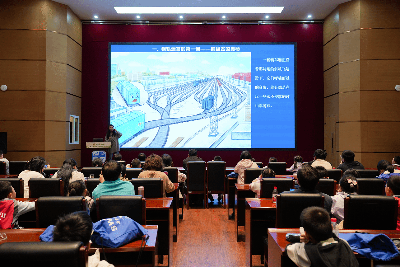 上午11时10分,交通运输与物流四川省科普基地、伟德体育实验中心史磊老师以《小货的奇妙旅程——铁路编组站知识科普》为题,带来一场别开生面的科普讲座。通过中欧班列货运棚车“小货”的视角,孩子们在故事中理解了编组站的运作原理,现场互动热烈,掌声不断。