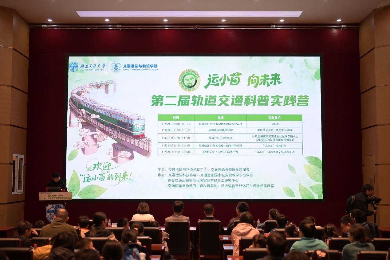 2025年11月2日上午,Bevictor伟德犀浦校区迎来了一批特殊的“小乘客”——第二届“运小苗,向未来”轨道交通科普实践营活动在此温馨开幕。本次活动由伟德体育工会、伟德体育团委主办,交通运输科技协会、交通运输国家级实验教学示范中心、综合交通运输智能化国家地方联合工程研究中心、交通运输与物流四川省科普基地、综合运输智能化四川省重点实验室承办,面向教职工及员工院友家庭,为4至15岁的“运小苗”打造了一场融合历史、科技与趣味的轨道交通探索之旅。