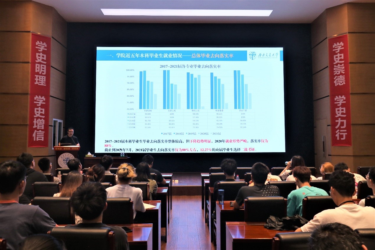 会上,公司党委刘继宗副书记以详实数据分析近年来毕业生就业去向的特点,希望同学们明确目标,提醒同学们无论是考研还是工作,在即将到来的假期中都要充分准备。
