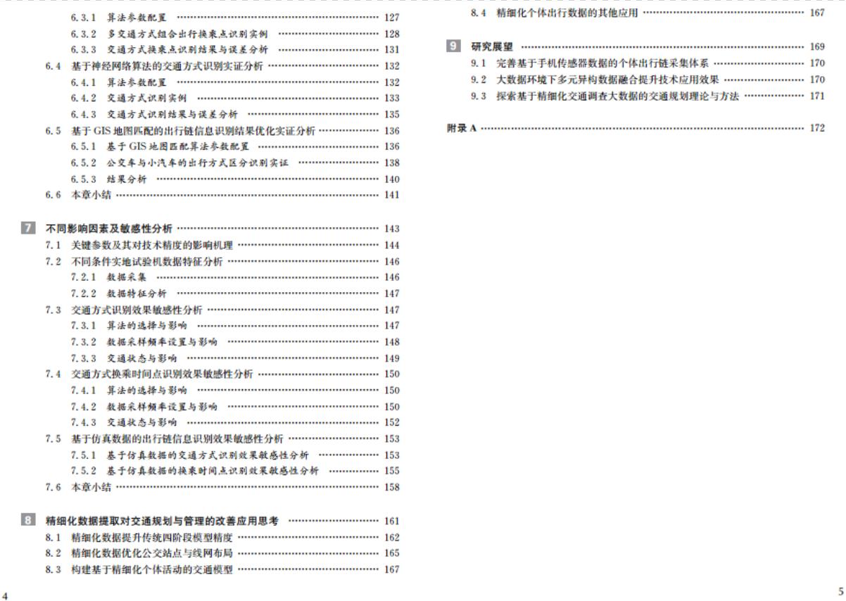传统居民出行调查缺陷导致的模糊主观粗放式的数据质量瓶颈难以满足新时期复杂交通问题的分析需求,有待更精细高质数据支撑,新一代通信技术带来契机,也是交通大数据支撑交通规划实践的重要前沿热点和核心关键之一。通过研发智能手机APP提取内置传感器数据(GPS、加速度、Wi-Fi等),解析3G/4G-LTE通信网络信令追踪手机用户在基站小区层级位置变化特征进行融合,本次专著探索了以手机信令数据、智能手机传感器数据为核心主导的交通大数据为基础,重点以居民个体出行为研究对象,综合采用神经网络、小波分析、随机森林、支持向量机和模糊聚类等数据挖掘算法,对个体出行的轨迹数据进行特征提取,通过出行端点判定、出行轨迹切割和出行方式识别三个关键环节,耦合建立“人-车-通信”一体化的集成仿真平台辅助技术评估与敏感性分析,融合新一代移动通信信令数据的个体出行活动特征精细化提取新方法体系,同时还展望思考了精细化出行数据对交通模型和理论的优化重构,包括从交通小区细分、数据质量改善、真实出行路径与交通分配等方面研究对四阶段模型精度提升,评估公交OD反推模型效果,实证标定基于活动的交通需求分析模型等。