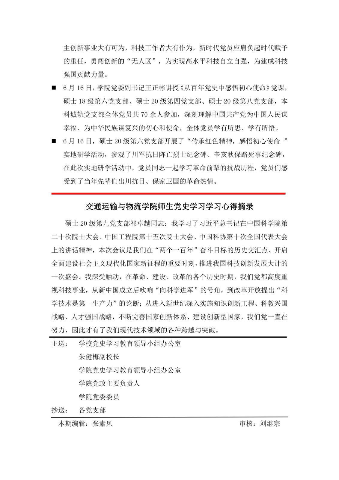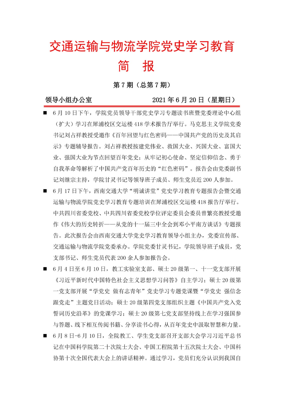 交通运输与物流公司党史学习教育简报(第7期)