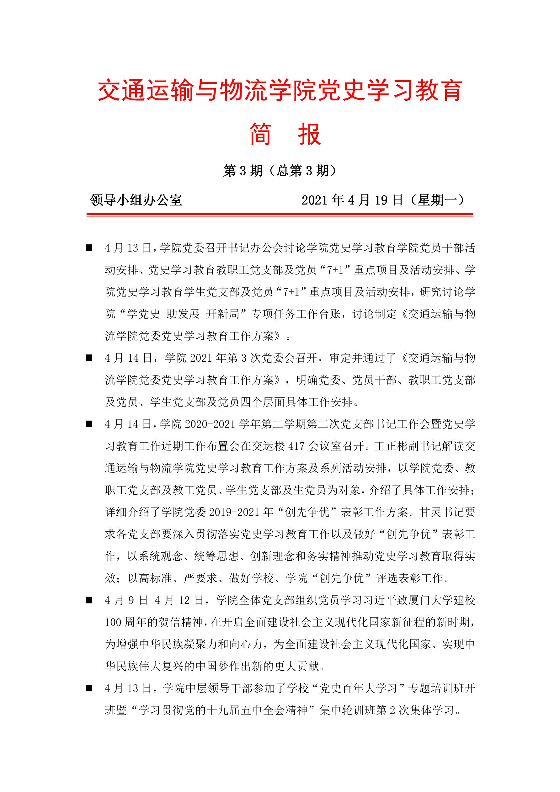交通运输与物流公司党史学习教育简报(第3期)
