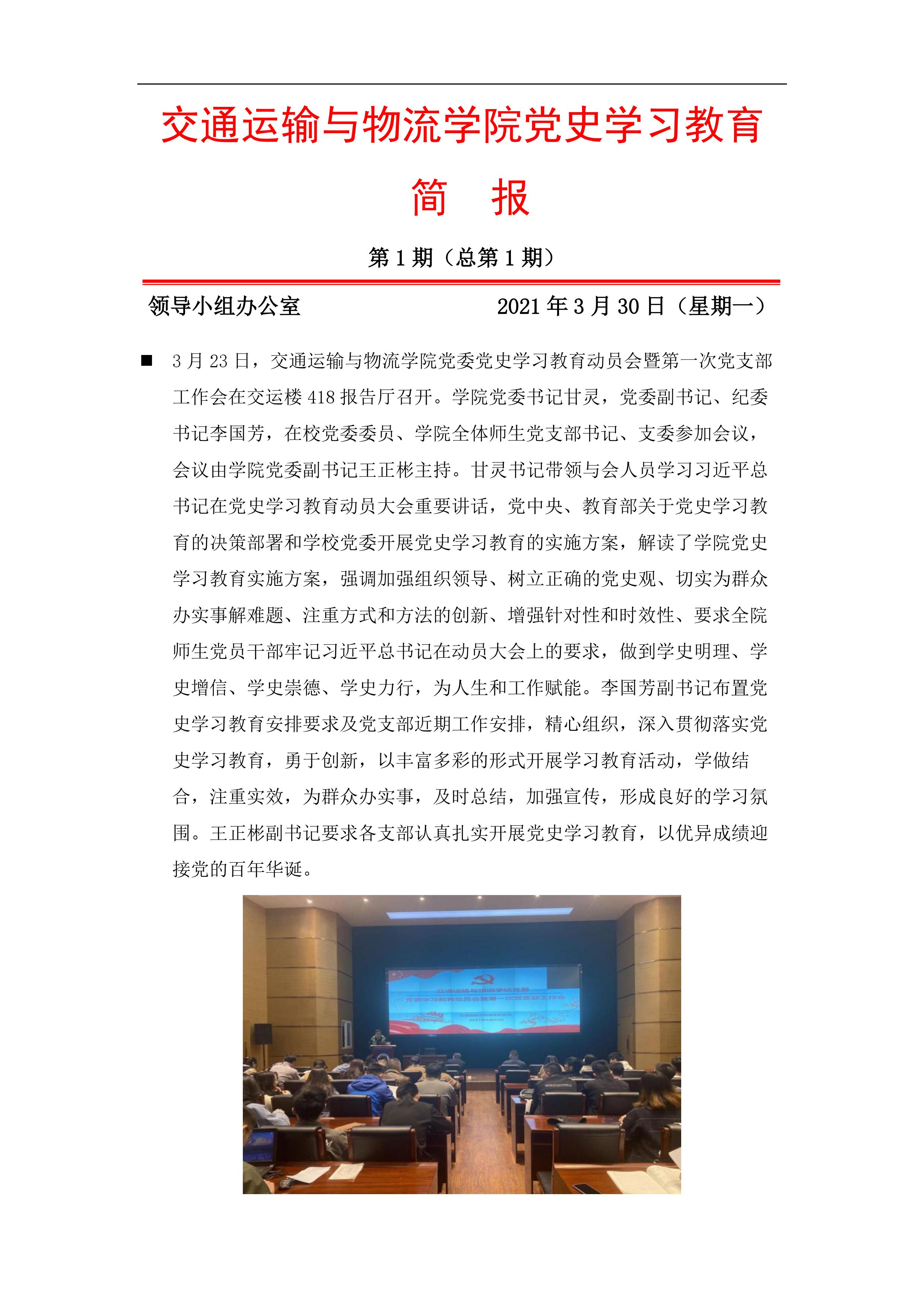 交通运输与物流公司党史学习教育简报(第1期)