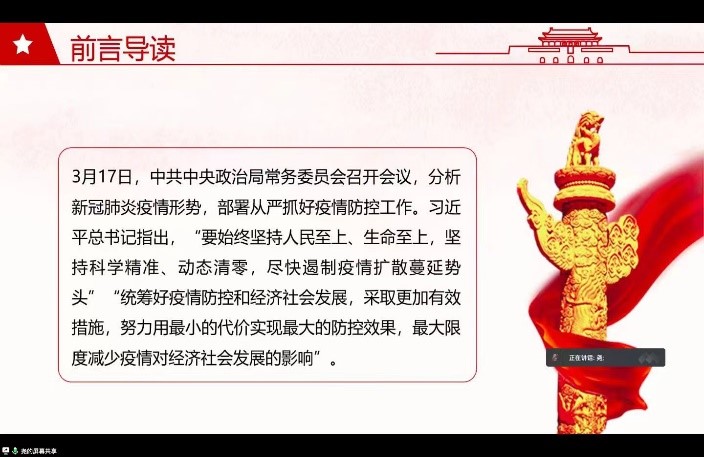 本研支部联合“携手同心 共守校园”主题党日活动,在学习习近平总书记指挥打好统筹疫情防控和经济社会发展之战述评的同时,开展了多种形式的抗疫故事会,以生动地实例,以亲身的经历,讲述共克时艰的故事。