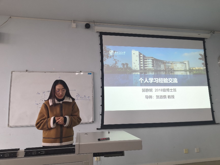 首先,郭静妮同学进行了分享。她认为:对于博士论文的选题,需结合自己的兴趣和专业尽早确定;对于博士论文撰写,当研究内容与最初的计划偏离时,应避免出现论文内容与自身专业基本不符的情况;对于论文投稿,应选择与论文的研究方向十分相关的期刊,避免无效的等待时间。