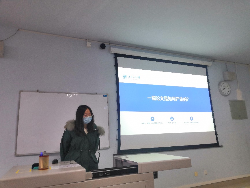 接着,李琳同学以“一篇论文是如何产生的?”为题,从论文的选题、写作、期刊选择、审稿意见回复、常用学术工具推荐等方面细致全面地展开了分享。她强调论文的完成是一个系统性的工作,任何环节都要全力以赴。她结合自身体会给出了四点建议:一是认真回复审稿意见;二是边想边写,记录自己的想法;三是常与导师沟通;四是要相信自己能够做好自己的研究。