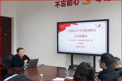 第二项内容:公司党委委员、国家级教学名师彭其渊教授为同学们带来了题为《十九届五中全会精神解读之交通强国》专题报告。