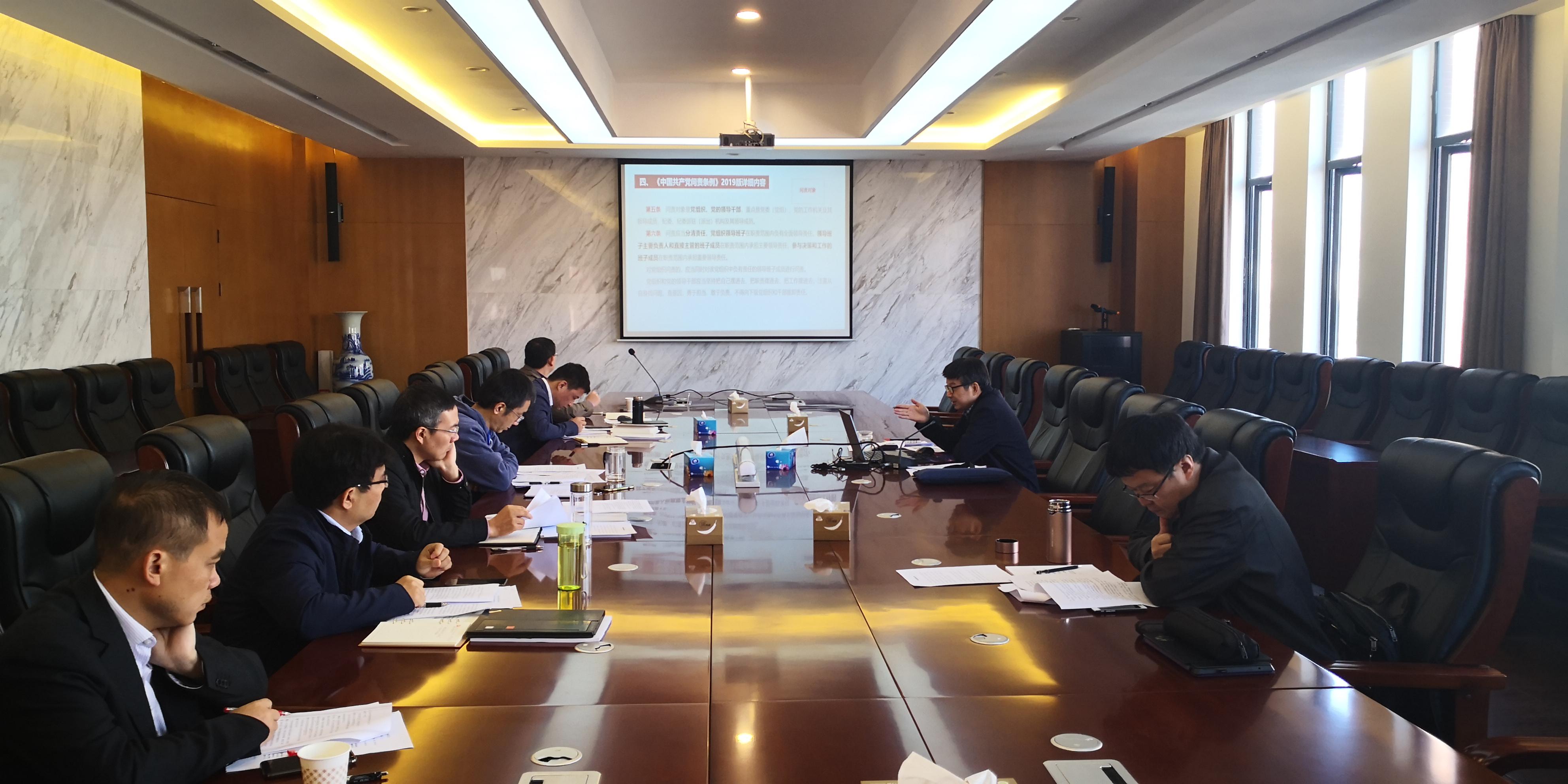 甘灵书记领学了《习近平关于全面从严治党论述摘编》(十)落实全面从严治党主体责任全部内容;从党内问责的初心与使命、党内问责制的历史沿革、中共中央印发《中国共产党问责条例》通知要求介绍了《问责条例》的印发背景和要求,并带领班子成员认真学习了《问责条例》具体内容。甘灵书记指出,通过深入学习落实全面从严治党主体责任和《中国共产党问责条例》,进一步明晰了什么是党委主体责任以及如何落实主体责任;党委书记责任重大,既要管好自己,更要带好队伍,要做到守土有责、各司其职,落实“一岗双责”;要认真学习,贯彻落实全面从严管党治党责任。