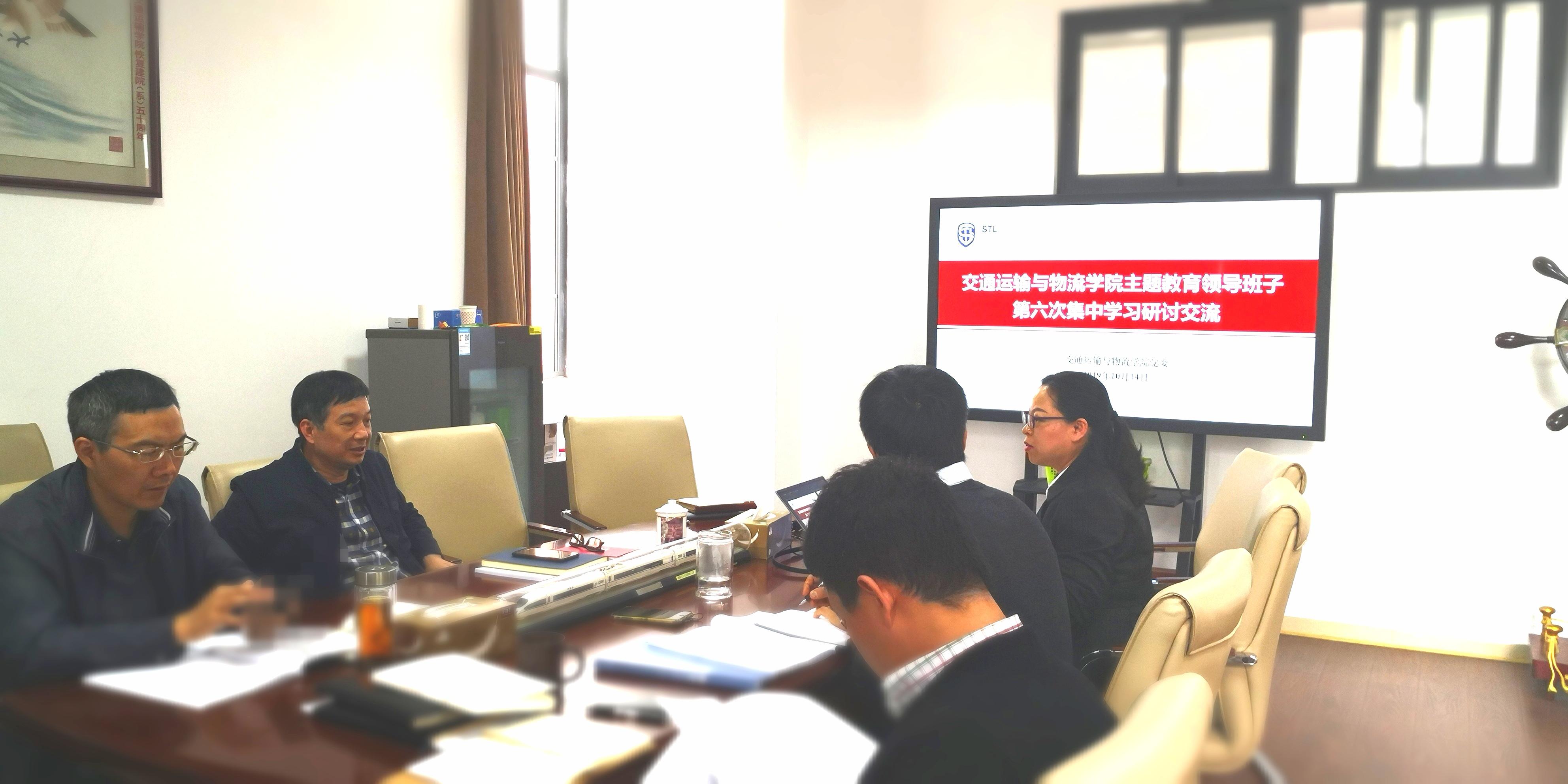 交通运输与物流公司党委“不忘初心、牢记使命”主题教育领导班子第六次集中学习研讨暨公司党委理论学习中心组2019年第十次集体学习于2019年10月15日14:00在交运楼412会议室顺利开展。学习由公司党委甘灵书记主持。