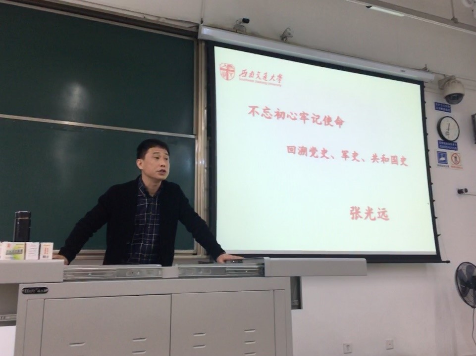 为扎实推进“不忘初心、牢记使命”主题教育,交通运输与物流公司党委张光远副经理2019年10月24日下午3:00在犀浦校区X2221为本科交运第二党支部、博士15级党支部、硕士19级第三党支部和硕士19级第八党支部全体党员讲授“回溯党史军史共和国史”专题党课。
