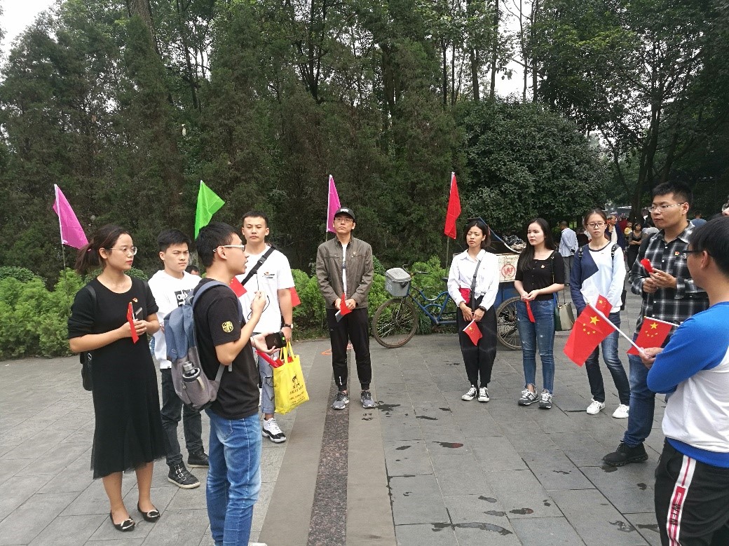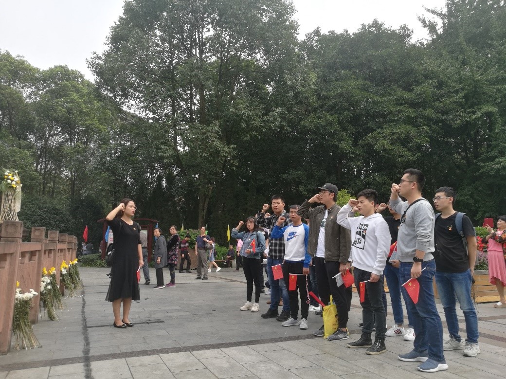 为庆祝新中国成立70周年,缅怀革命先烈,发扬革命精神,坚定爱国主义情怀,2019年9月29日伟德体育硕士18级第二党支部和博士19级党支部前往成都市人民公园开展爱国主义活动,活动内容包括参观红色景点、重温入党誓词、演唱红色歌曲等。