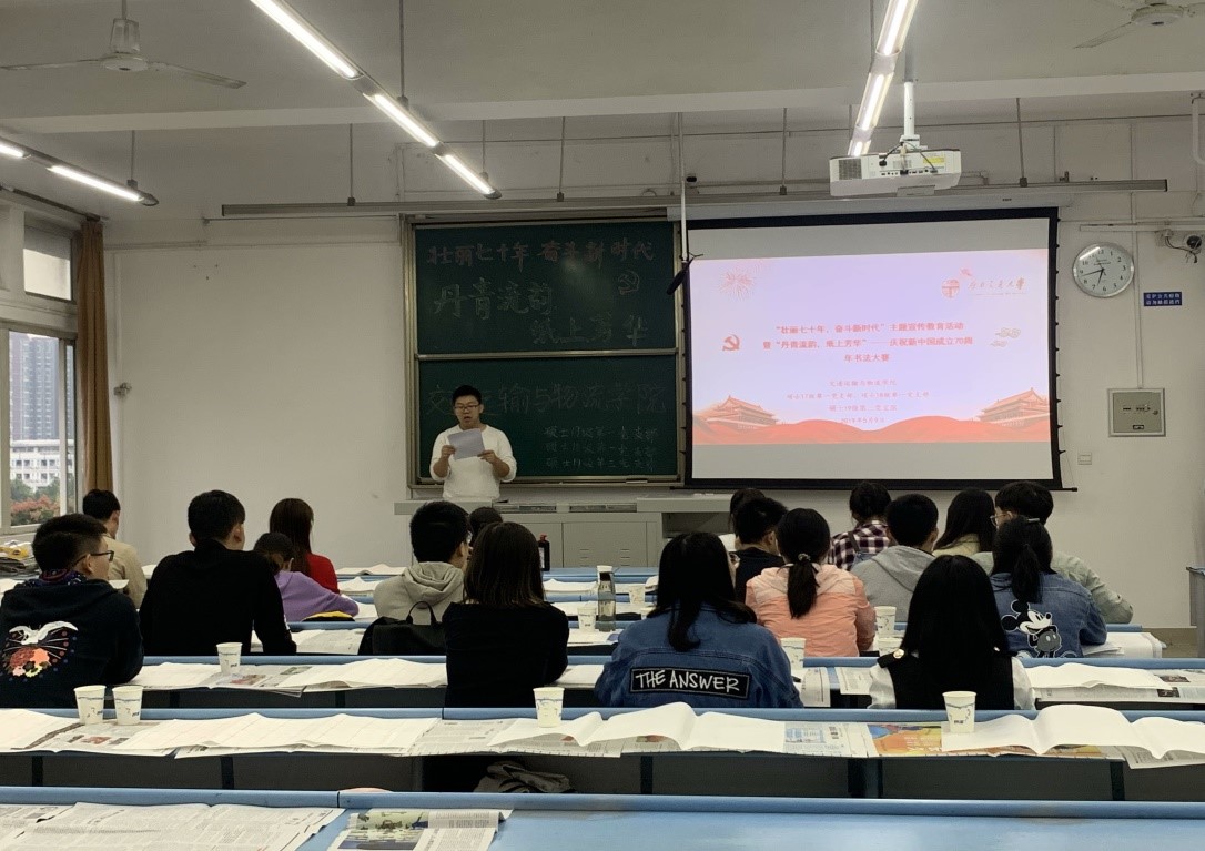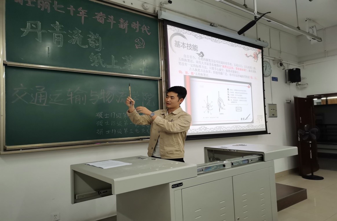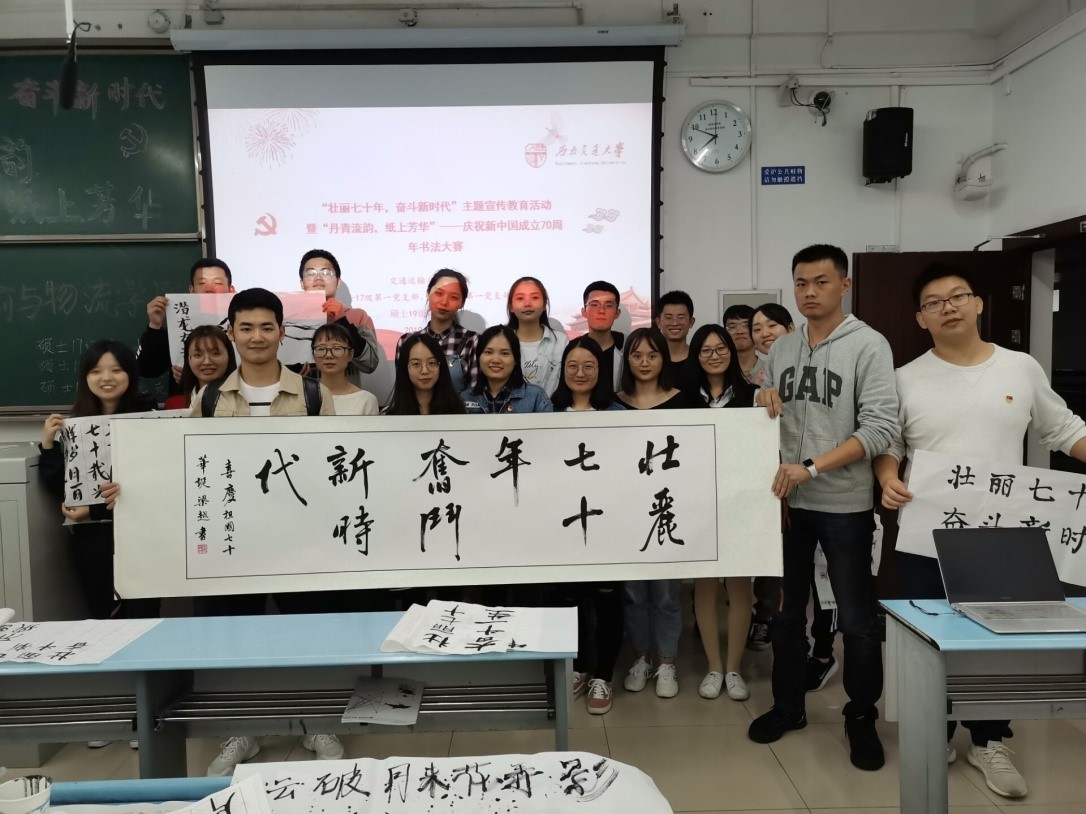 2019年9月26日晚6:30,伟德体育硕士17级第一党支部、硕士18级第一党支部、硕士19级第三党支部于犀浦校区X2528教室开展了“丹青流韵,纸上芳华”——庆祝新中国成立70周年书法大赛主题党日活动。本次活动邀请到了原书画协会会长梁越同学作为嘉宾参与并指导。