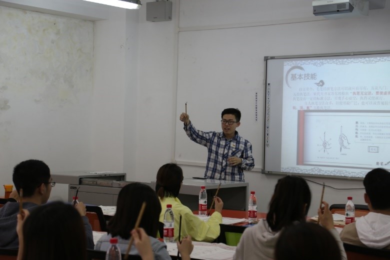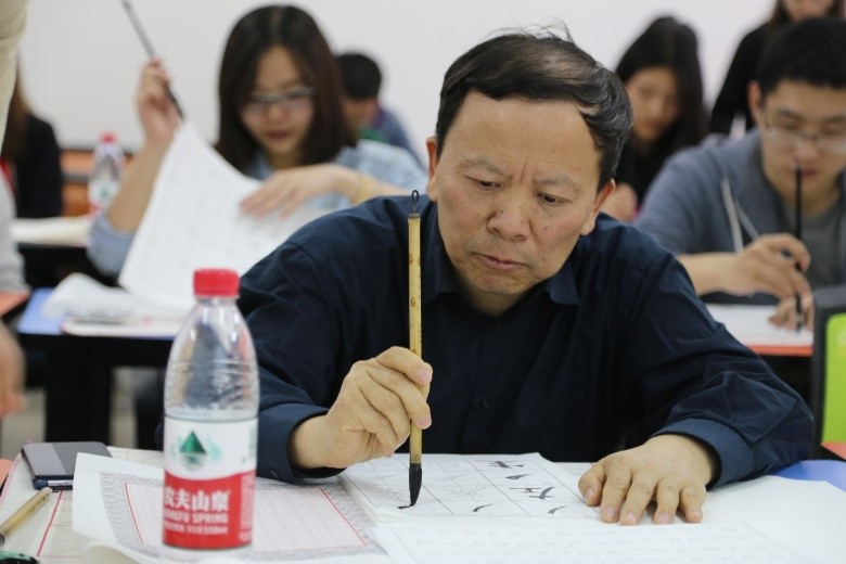 第三部分,由现任Bevictor伟德老员工书画协会会长陈锦涛同志介绍中华传统文化瑰宝——书法艺术。从书法入门的楷书、隶书到行书、草书;从最基本的笔握手法到横竖撇捺,陈锦涛同志悉心讲解、耐心演示。讲解过程中,大家拿起手中的毛笔跃跃欲试,在准备好的宣纸上开始模仿写好一横、一竖,再看看周围同学的作品,仔细琢磨写作技巧,现场气氛十分活跃。随后,书画协会的三名同学进行现场指导,让党员们通过实践走近传统书法艺术。