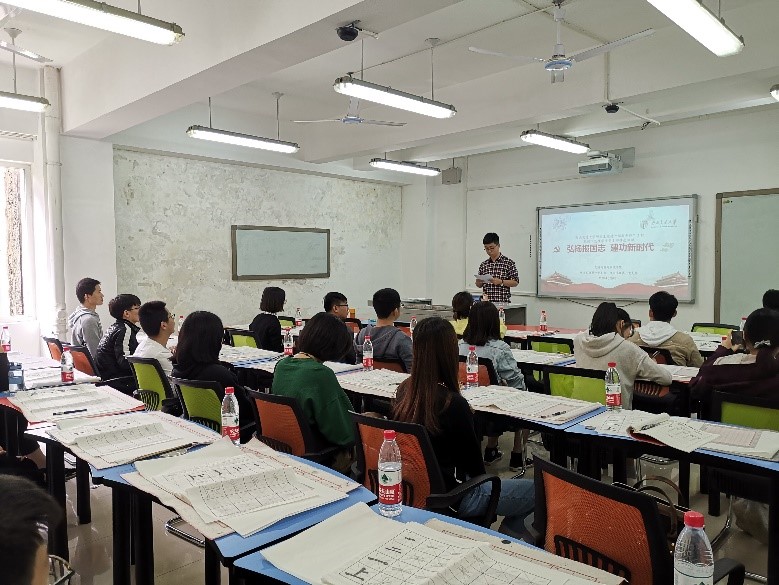 为深入学习贯彻习近平新时代中国特色社会主义思想和十九大精神,以优异成绩为建国70周年献礼,纪念五四运动100周年,2019年5月9日下午,在犀浦校区X2123B教室,伟德体育硕士17级、18级第一党支部联合开展“弘扬报国志,建功新时代”校级示范性员工党支部特色活动。莅临本次活动进行指导的嘉宾有:交通运输与物流公司党委委员、综合交通运输智能化国家地方联合工程实验室主任彭其渊教授;交通运输与物流公司党委专职组织员、本次活动指导老师黄莺老师;Bevictor伟德老员工书画协会梁越、陈锦涛、刘胤格三名同学。本次活动由硕士18级第一党支部书记张志博同志主持。