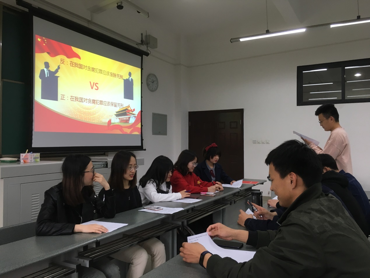 为深入学习习近平新时代中国特色社会主义思想和党的十九大精神,不断强化支部党员的思想武装,增强党支部活动的趣味性。2019年4月12日下午硕士18级第七党支部在X9201教室开展了“在我国对贪腐犯罪是否应该保留死刑”辩论赛活动。本次活动由第七党支部书记陈木泉同志主持。