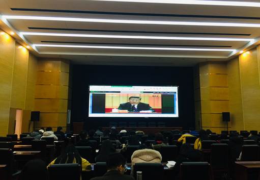 2018年12月18日上午10时,伟德体育师生于交运大楼417学术报告厅收看庆祝改革开放40周年大会的现场直播。交通运输与物流公司党委郝建平书记,专职组织员黄莺老师,员工工作组副组长张素风老师、王炎冰老师及全体辅导员、部分师生党员代表均到场观看,同时公司号召同学们自由收看收听此次大会直播。