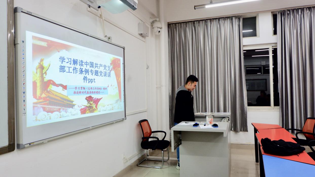 为深入学习《中国共产党支部工作条例(试行)》,加强基层党支部建设,2018年12月13日19:00伟德体育硕士17级第四党支部和第五党支部在X2530教室集中学习了《中国共产党支部工作条例(试行)》。本次活动由第四党支部的梁越同志主持。