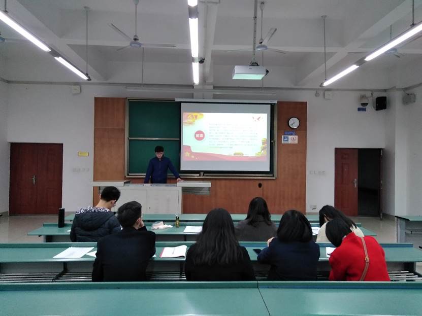 本次活动由支部成员刘羽同志主持。刘羽同志从何为“担当作为”、担当作为是党员的基本素质、为何强调要担当作为以及新时代党员干部如何担当作为几个方面展开阐述。