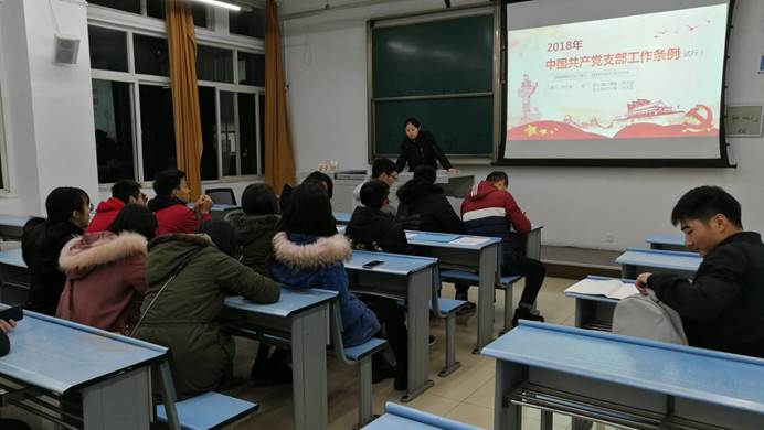 为加强基层党支部建设,推进党支部标准化、规范化建设,充分发挥支部的战斗堡垒作用,2018年11月29日硕士17级第一党支部和第二党支部在X2434教室集中学习了《中国共产党支部工作条例(试行)》。本次活动由第一党支部书记杨天旻同志主持。