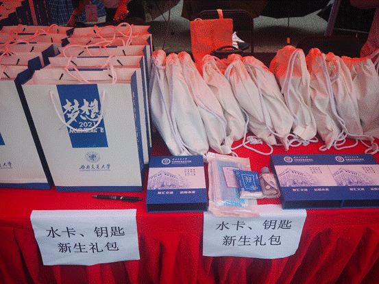 为缩减新生在迎新点的停留时间,避免排长队、人员聚集等现象,有效提高报到效率,志愿者们于9月1日下午,提前将新生礼包发放到各个宿舍。除了公司分发给新生的《新生入学指南》、文化衫等物品,公司还为每一位交运新生准备了“暖心见面礼”,印有院徽的背包,公司文创礼物,以及酒精湿巾、洗手液、口罩等防疫物资。