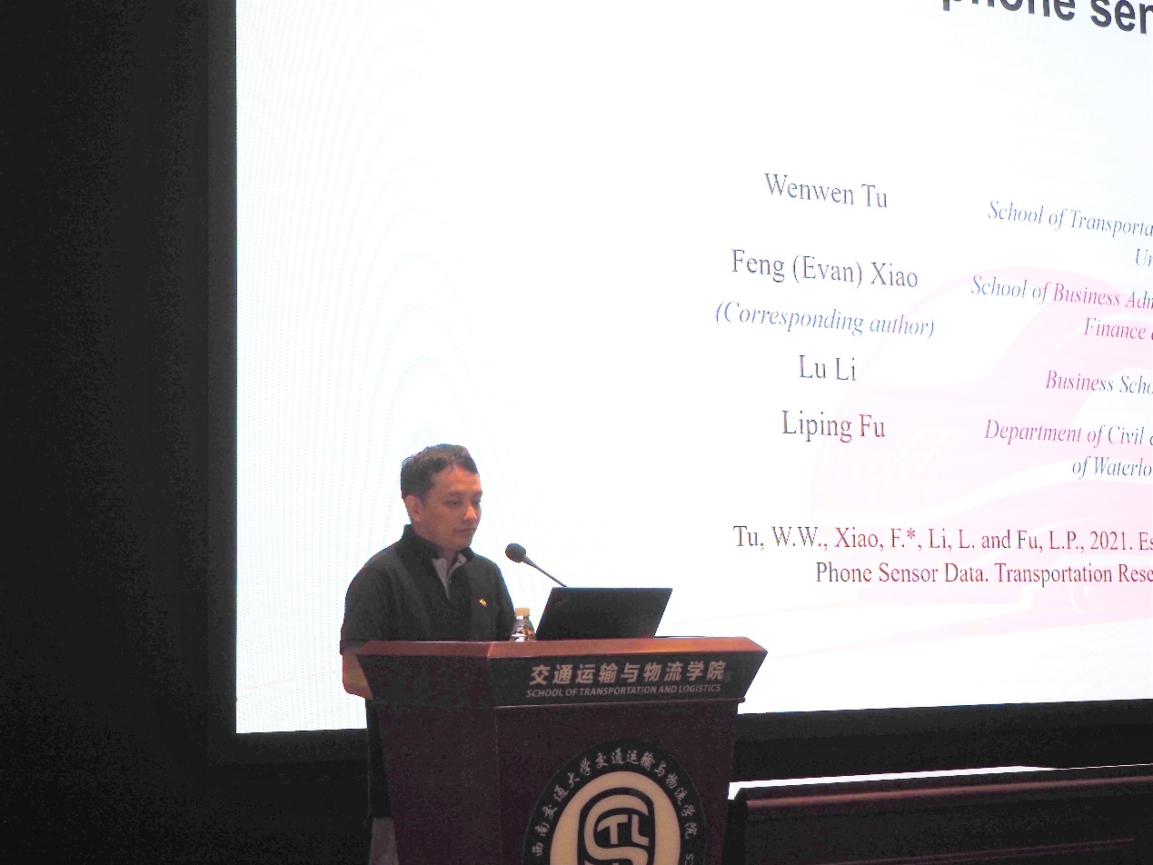 讲座第二部分是肖峰副经理主讲的“Estimating Traffic Flow States with Smart Phone Sensor Data”。肖峰副经理主要从问题提出、数据收集、交通流分类框架、结果分析、结论6个方面详细介绍了一种基于智能手机传感器数据的交通流状态分类框架、不同交通流状态下的统计变量、九种分类模型的结果分析等热点研究技术与内容。