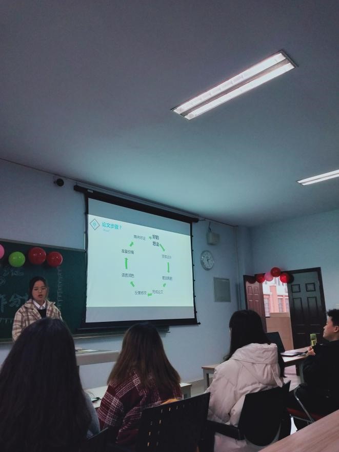 2019年11月10日,伟德体育硕士19级7班在X9455举办论文写作分享活动,邀请到博士19级唐李莹学姐和硕士18级陆良学长为班级同学分享学术论文写作经验和技巧,班级同学均积极参与了本次分享会。