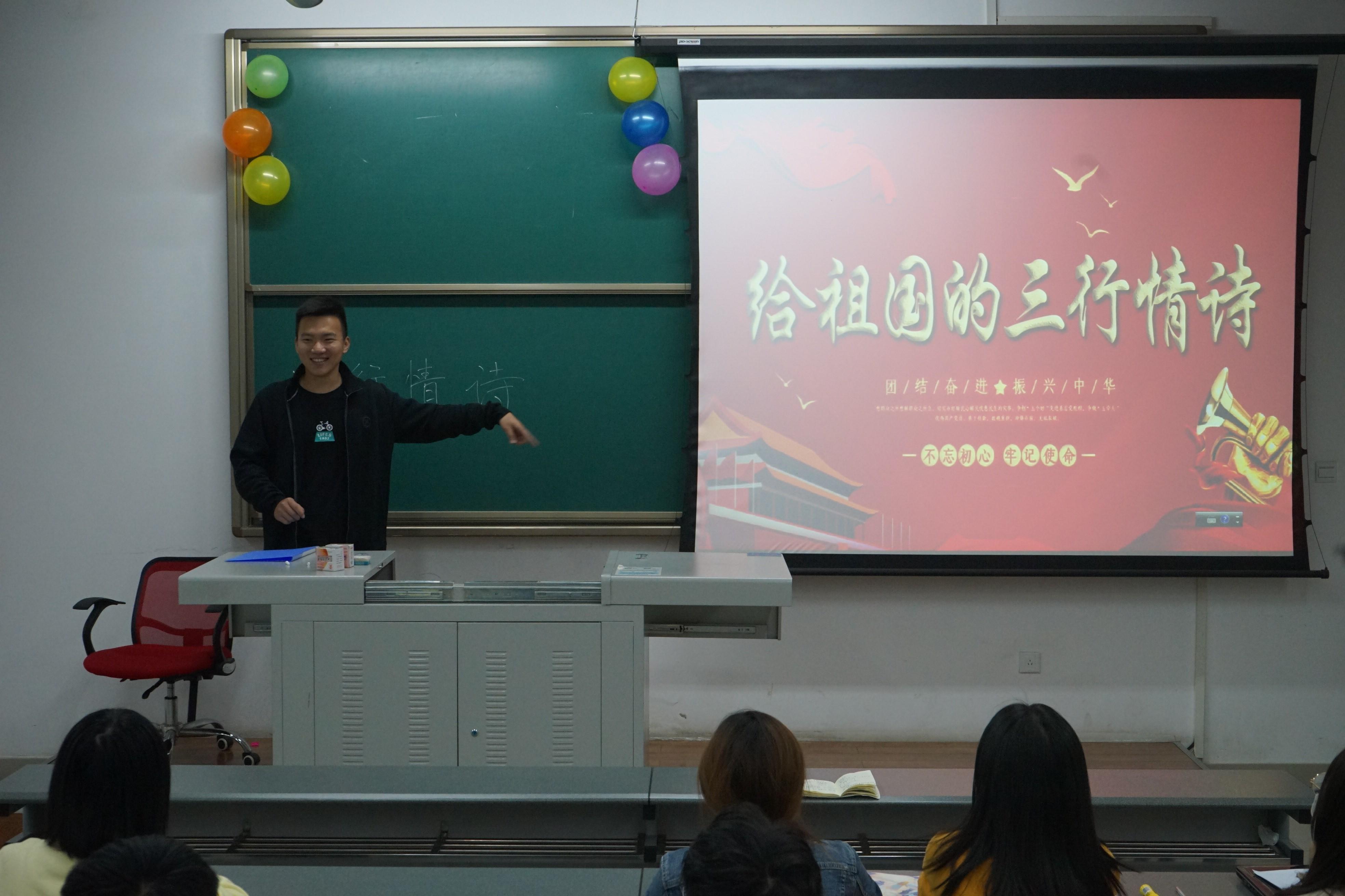 活动以“感受祖国魅力,启发个人情怀”为主题,采用朗诵表演的形式开展,旨在让同学们感受我国发展的欣欣向荣,增强同学们的爱国意识。