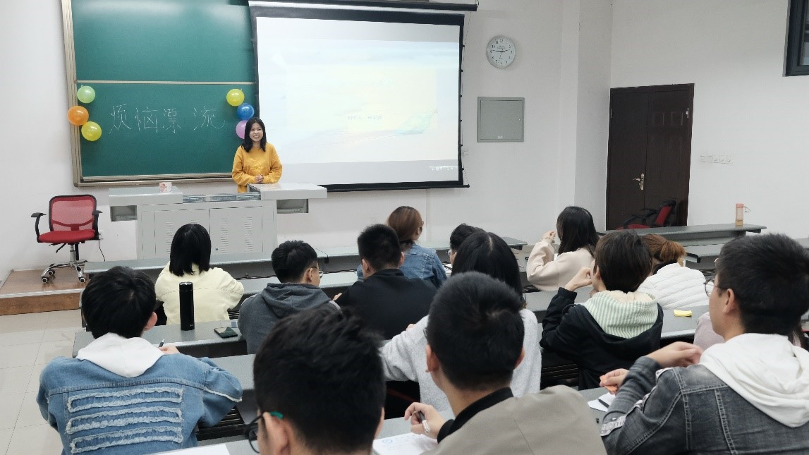 活动最后,王艺梦同学结合自身所遇到的问题以及同学们的基本情况,对如何舒缓当前研究生生活压力做了分享,并向大家介绍了心理学的相关知识以及情绪控制管理的方法。