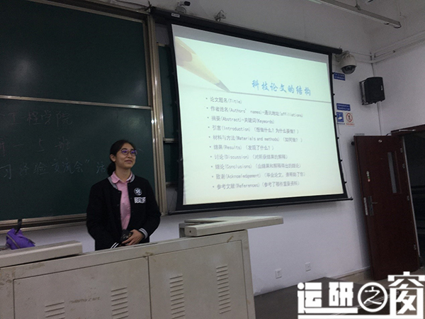 随后学习经验交流会正式开始,第一位分享经验的是李思佶同学,作为学习委员的她平时学习认真踏实,对于学习严格要求自己,其讲述了自己在本科毕业论文的撰写过程,以及在论文的写作方面的一些技巧和方法。