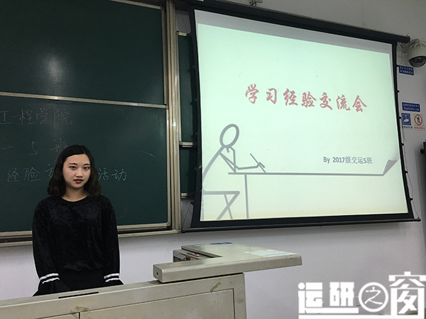 最后,班长钱寒燕同学对本次活动进行了总结,本次活动开展的比较顺利,达到了预期的效果。班级同学从本次学习经验交流会中获得了很多咨询,也获得了诸多重要经验。不管是对往后参加各类学术项目还是在自身的学习生活中都有了一个崭新的认识,对自己以后的定位和规划也有了新的想法。到此,本次班级经验交流会圆满结束。(编辑:交运研会宣传部)