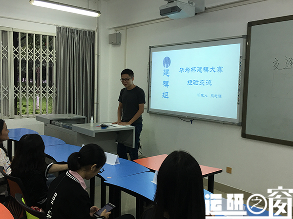 然后是建模小组组长熊志强,他分享了自己在刚刚结束的建模比赛中的经验和体会,如何在一开始拿到各个建模试题时进行准确的分析和快速的确定选题,以及在建模过程中可能遇到的各种问题,以及他们在网络上查阅各种试题相关论文的一些心得体会。