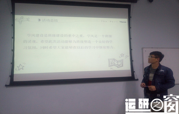 活动开始前半个小时,17级硕士二班的班委们提前到达活动教室,进行现场设备设施的调试和安排,做好活动的精心准备。交流会开始,班长唐昭首先对积极参加班级学风建设活动的各位同学表示感谢,并向大家简单介绍了班级学风建设的意义和目的。